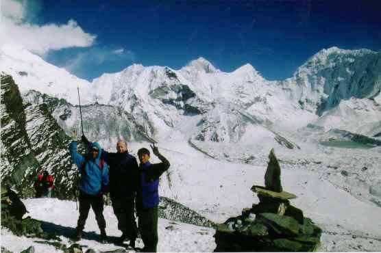 Island Peak, view from the summit of Chukung Ri (5500 m) to the East. With Sherpa's Kachee and Ang Purbha. October/November, 1997. Use "Back" to return to photo index.
