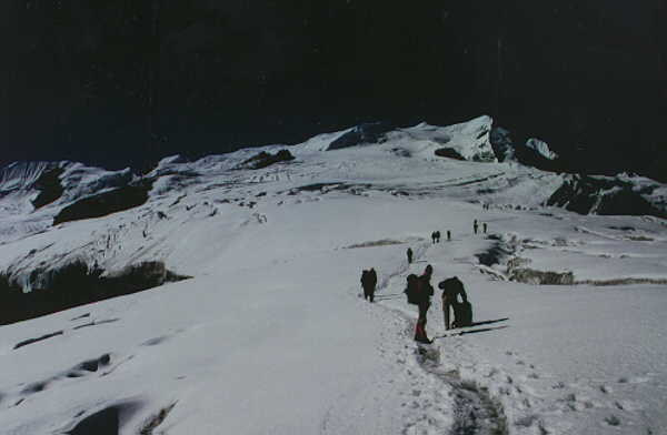 Zeer vroeg wordt de beklimming van East Col aangegaan en