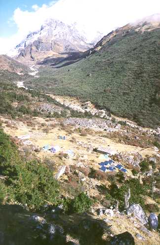 Far back-ground right is valley towards the 5800 m high pass to Tibet, used in the summer by yak caravans for trading. |
