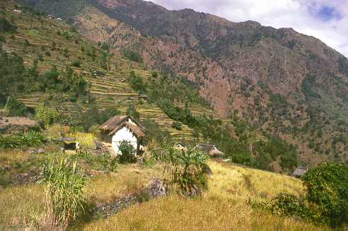 House and rice fields near Tambema (2000 m altitude). |