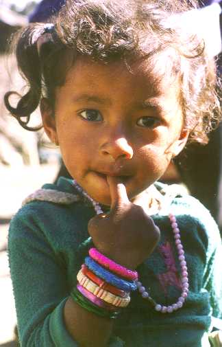 Young girl near Basantapur, with fake pearl necklace. |
