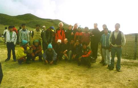 Kangchenjunga trekking group of Oct/Nov 1999 at Suketar Airport (2420 m altitude).