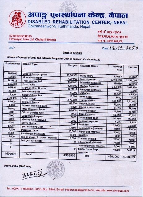 en er loopt al een verzoek voor de aanschaf van rolstoelen voor aan Cerebral Palsy lijdende kinderen ad. 1.890.