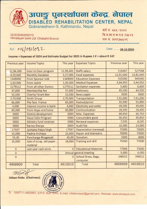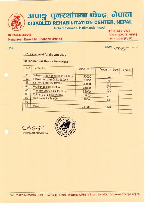 Voor 2025 heeft het bestuur besloten om een aanvraag van 1.548. te doneren voor hulpmiddelen.