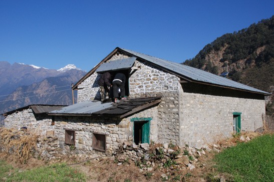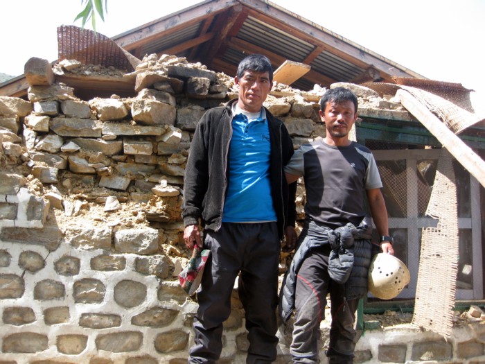 Onze helpers Thiren Rai en Mingmar Tamang vertrokken na de ramp naar Keraunja en zij kwamen daar gelijk aan met een