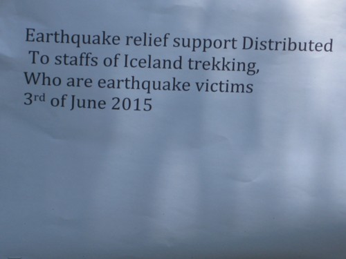 Ook het personeel van Iceland Trekking werd niet vergeten, zo'n 30 "Sherpa's " met schade aan hun huizen kregen ieder ca € 400.